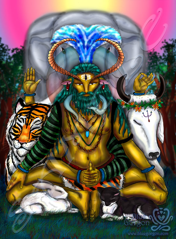 De godheid glimlacht: “Mijn advies is yoga, haal de kracht uit jezelf.”